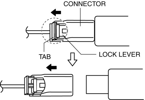 7. Disconnect the connector from the pressure sensor by pressing the connector tab and pulling out the lock lever in the direction of the arrow.
