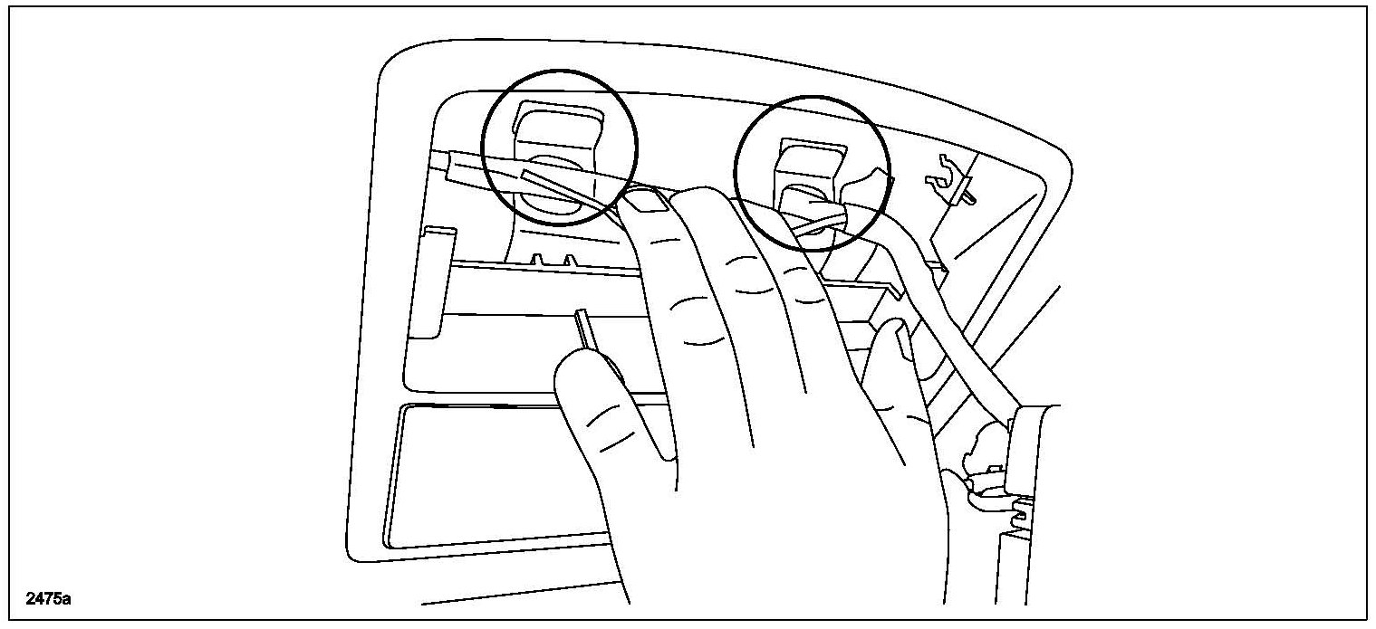 7. Pull down the bracket to open a clearance between the tabs and the roof panel (more than 6mm).