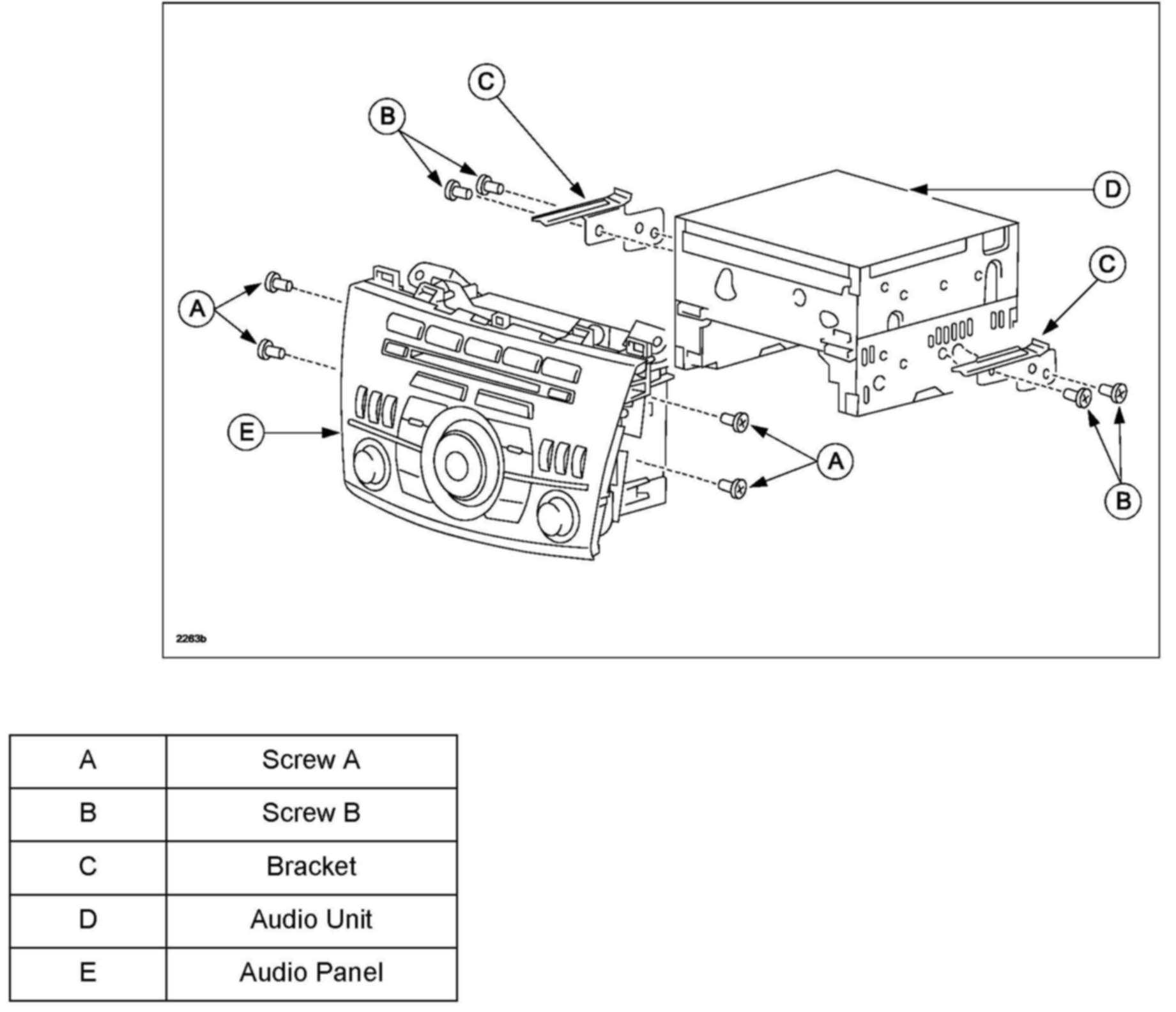 2. Remove the audio unit. Refer to MS3 online instructions or Workshop manual (section 09-20 AUDIO UNIT REMOVAL/INSTALLATION).