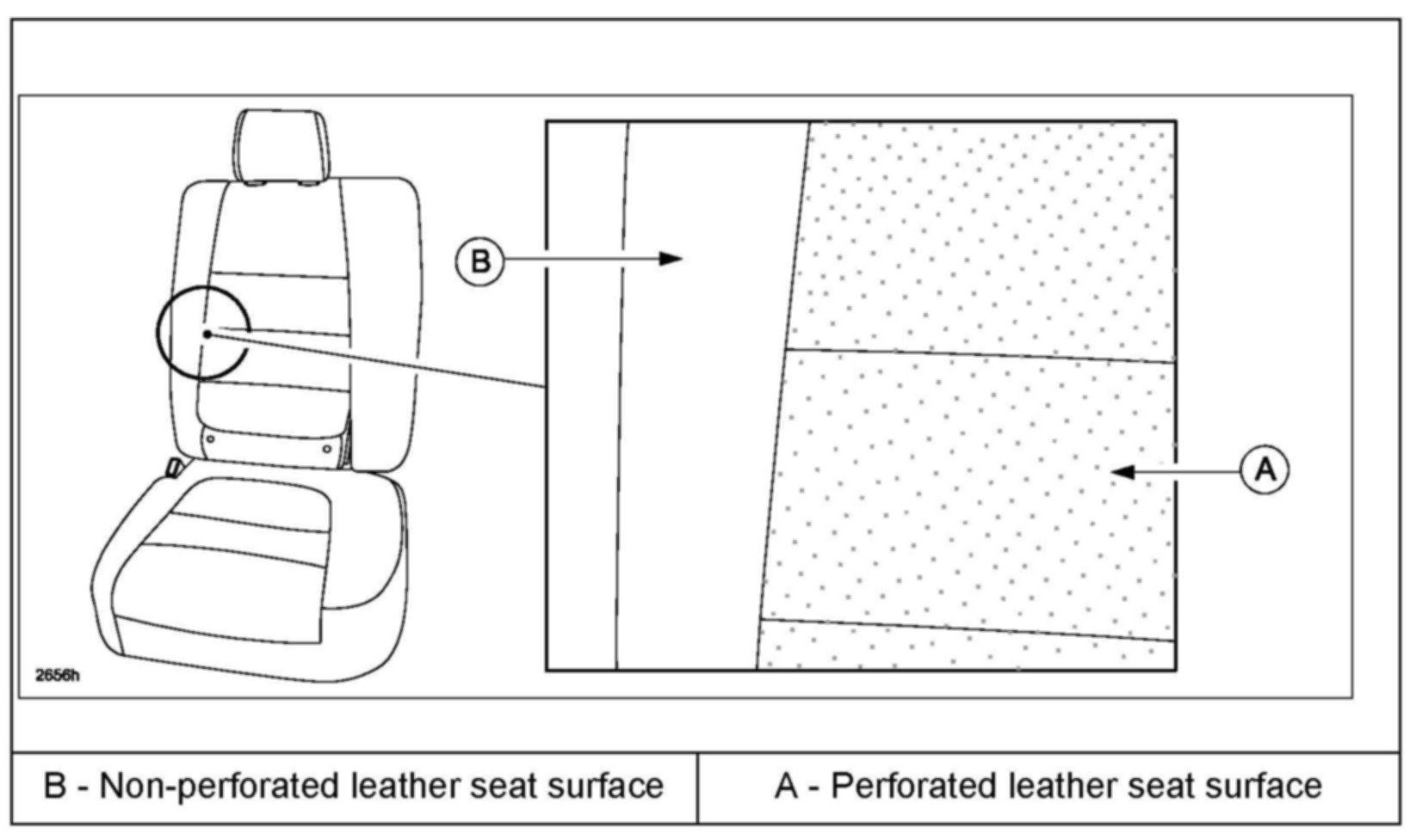 ^ Do not apply direct heat on the perforated sections of the leather seat surface.