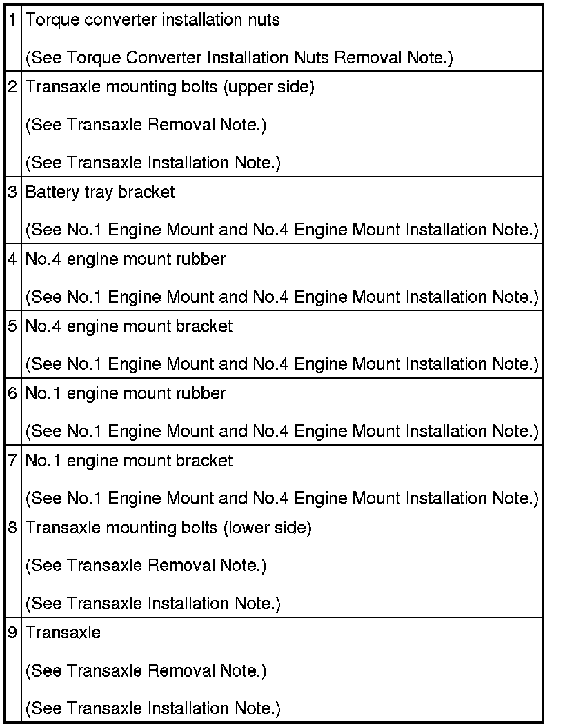 Transaxle Removal Note