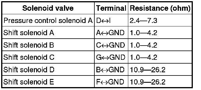 Shift solenoid A, B, C specification