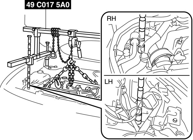3. Adjust the SST (49 C017 5A0) so that the engine is located at the specified position.