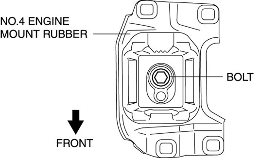 4. Place the No.4 engine mount rubber with the body stud bolts passing through the holes and tighten the bolt in the figure.