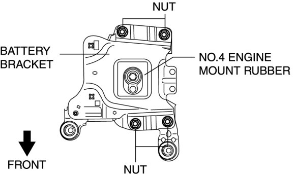 6. Place the battery bracket on the No.4 Engine mount rubber with the body stud bolts passing through the holes and tighten bolts and nuts in the order shown in the figure.