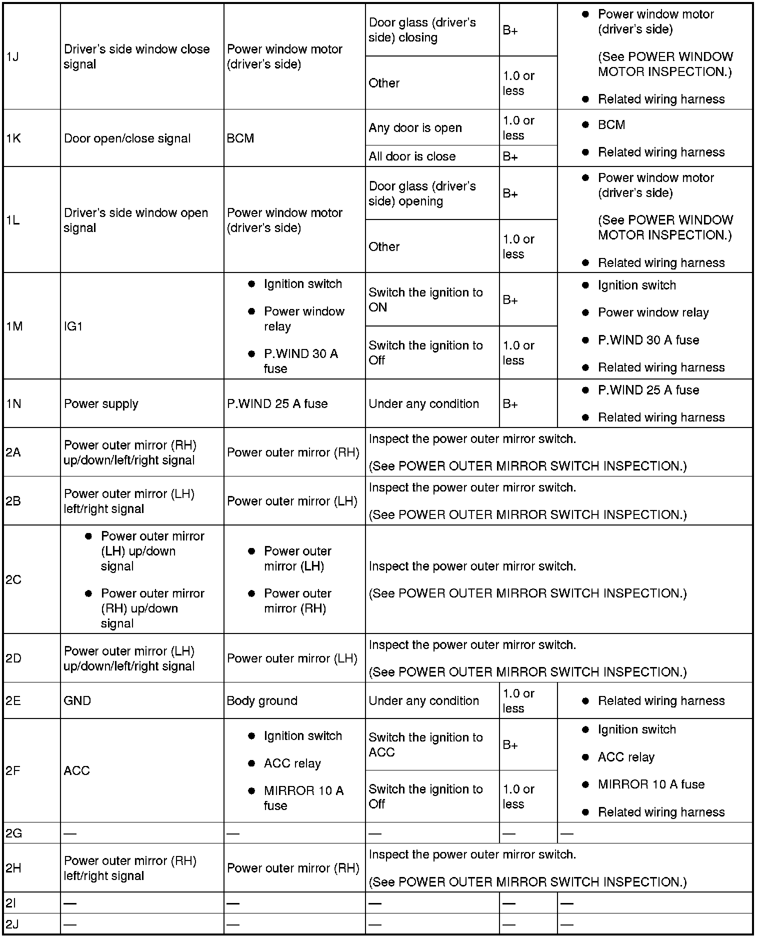 - If the system does not work normally even though the inspection items or related wiring harnesses do not have any malfunction, replace the power window main switch.