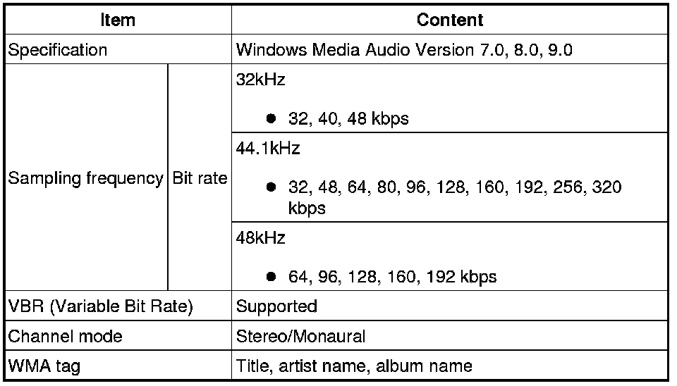 Playable WMA files are as follows: