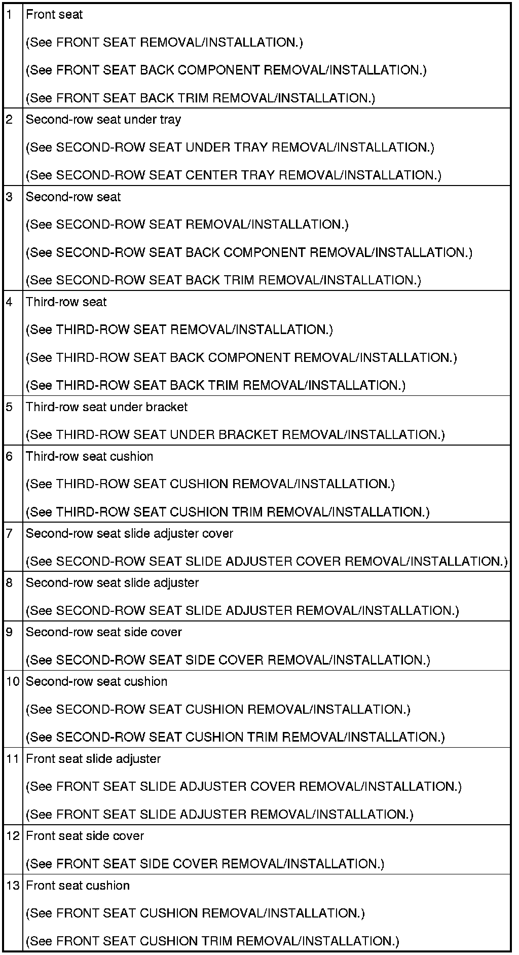 SEAT LOCATION INDEX