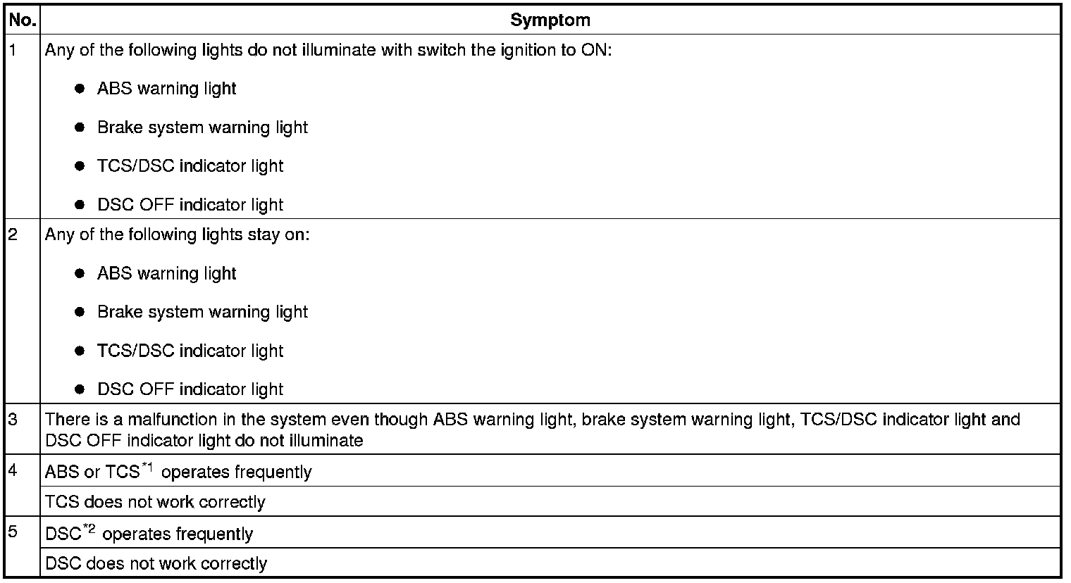 SYMPTOM TROUBLESHOOTING [DYNAMIC STABILITY CONTROL (DSC)]