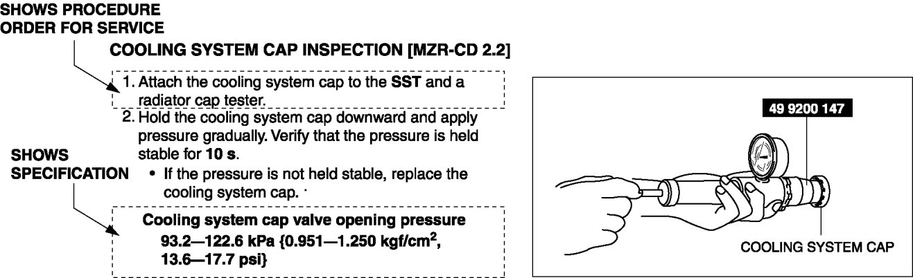 - The values indicate the upper and lower limits that must not be exceeded when performing inspections or adjustments.