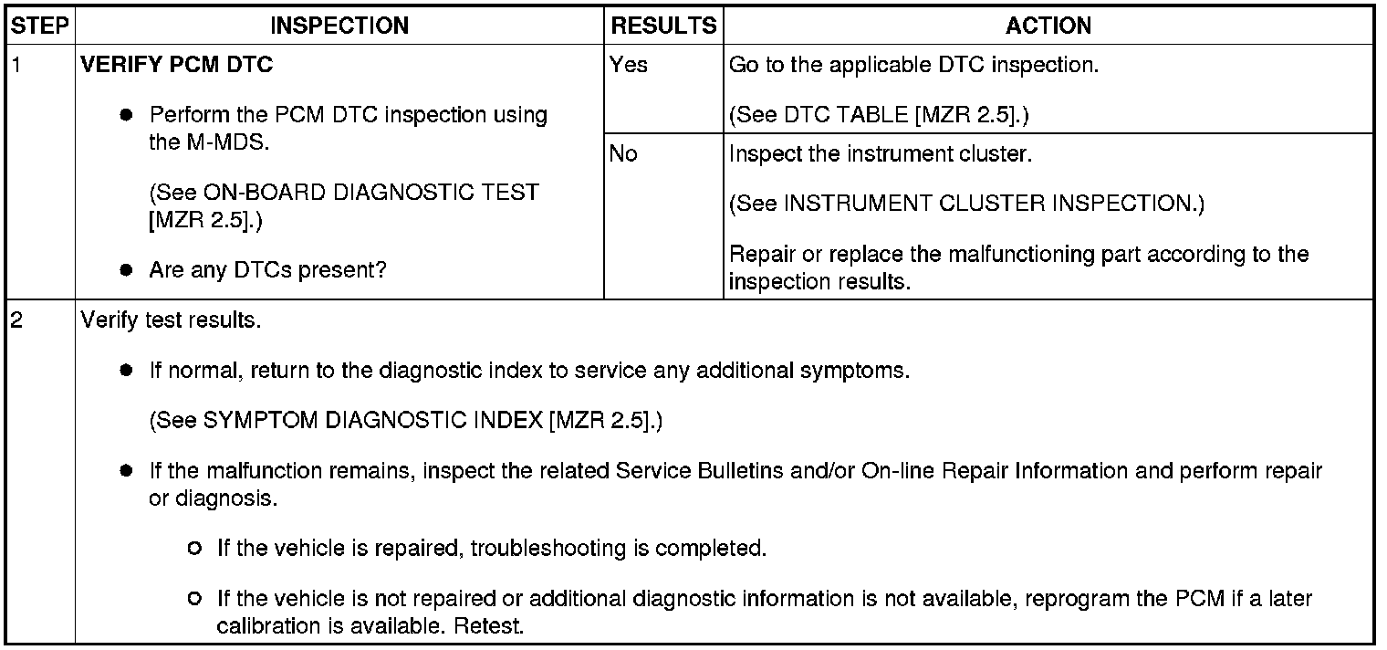 NO.2 CHECK ENGINE LIGHT ILLUMINATES [MZR 2.5]