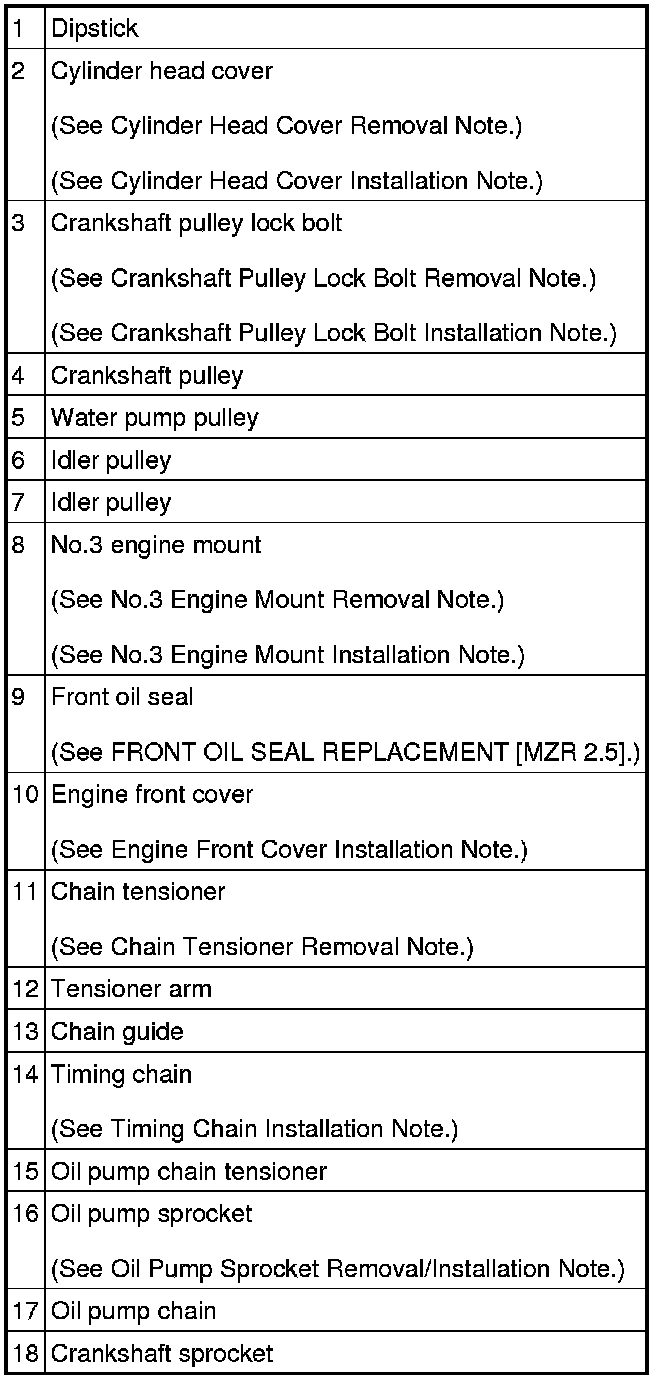 TIMING CHAIN REMOVAL/INSTALLATION [MZR 2.5]