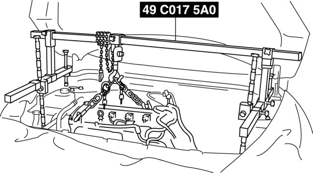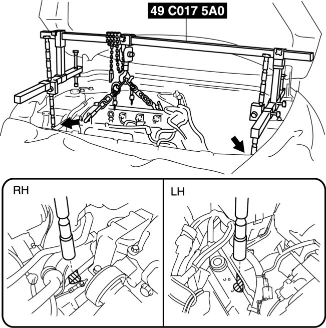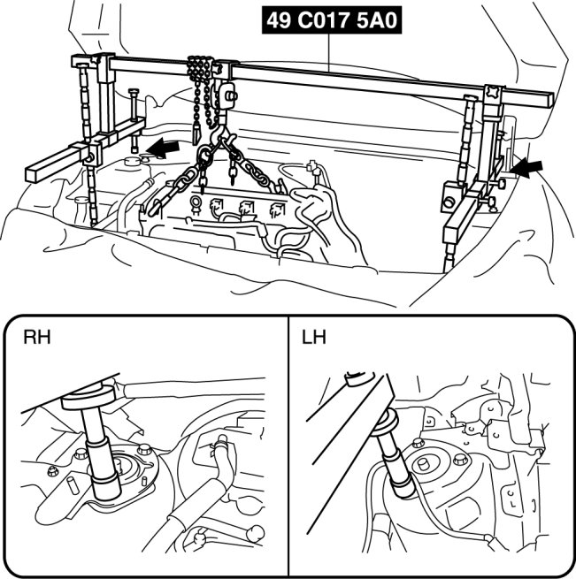 a. As shown in the figure, set the rear shafts of the SST to the left and right shock absorber bolts.
