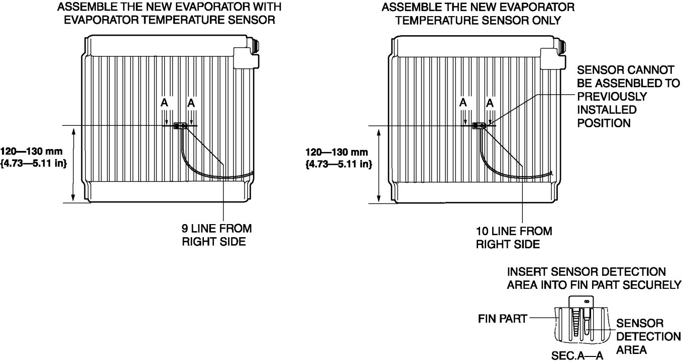 - Replace the evaporator in which the evaporator temperature sensor cannot be correctly positioned.