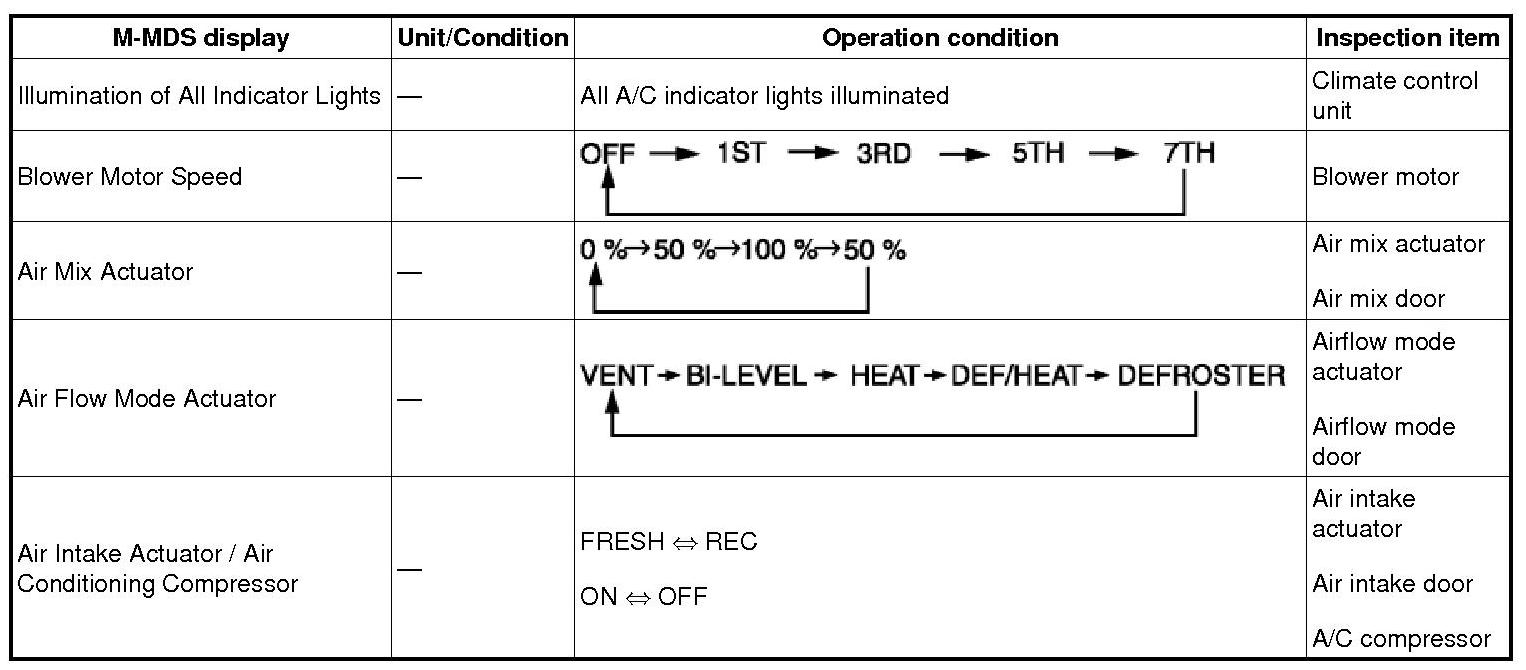 A/C OPERATION CHECK MODE TABLE [FULL-AUTO AIR CONDITIONER]