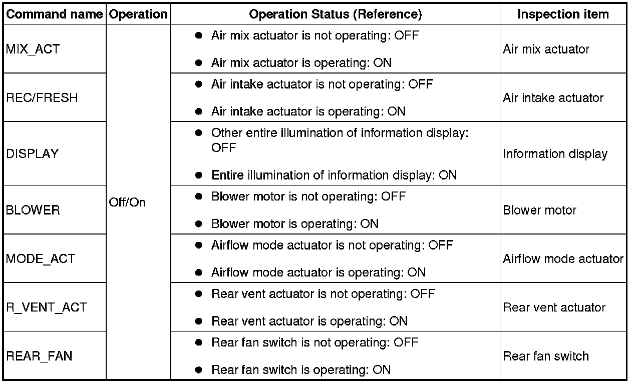 ACTIVE COMMAND MODES TABLE [FULL-AUTO AIR CONDITIONER]