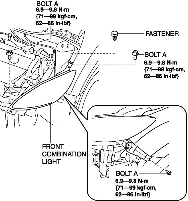7. Remove the front combination light.