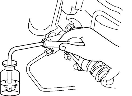 d. While the clutch pedal is being held down, the other person should loosen the bleeder screw using the commercially available flare nut wrench, and bleed any clutch fluid containing air bubbles. Once completed, tighten the bleeder screw.