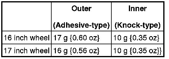 - When attaching the weight, press the weight with a force of 25 N {2.5 kgf, 5.5 lbf} per 5 g for 2 s or more.