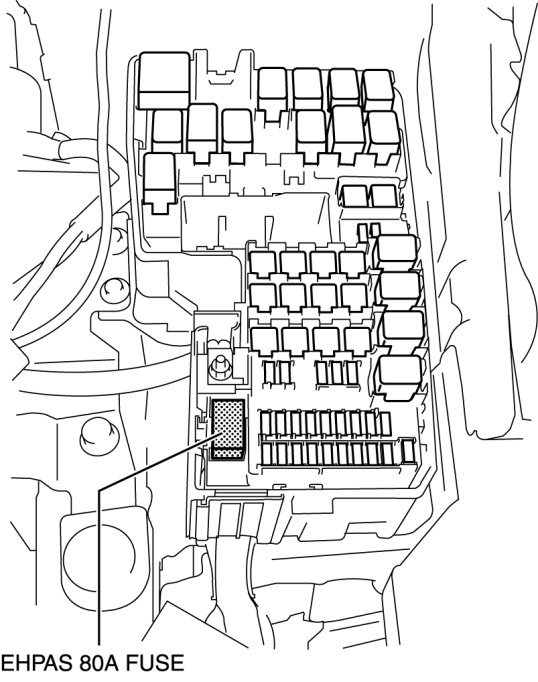 4. Remove all of the relays and fuses except for the EHPAS 80A fuse shown in the figure.