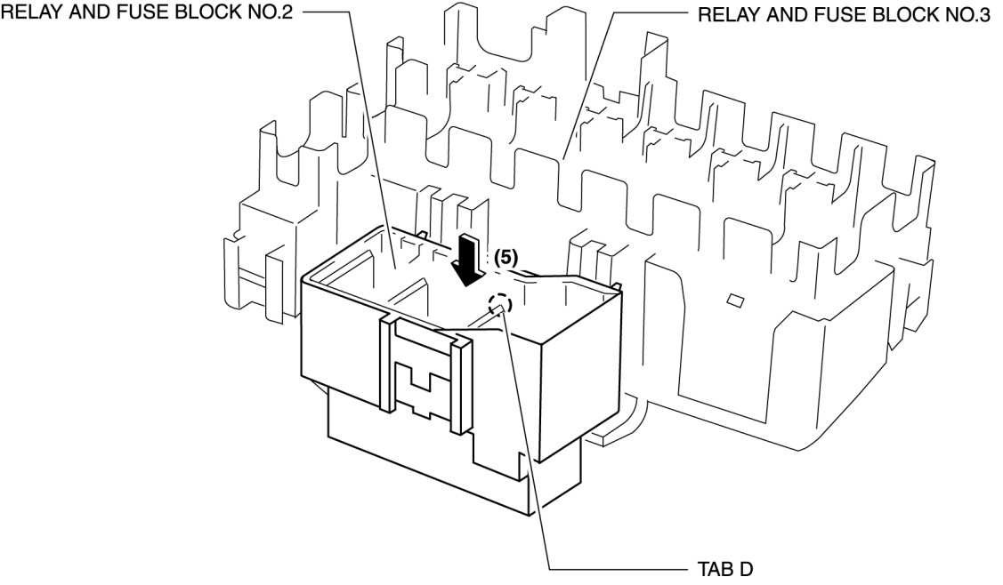 - This procedure is performed for relay and fuse blocks No.1, 2, and 3.