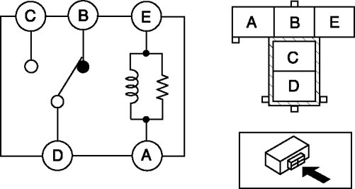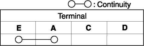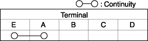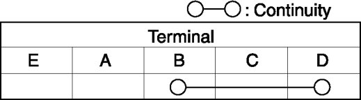 b. Apply battery positive voltage to terminal E, and connect terminal A to ground. Verify that the continuity between terminals C and D.
