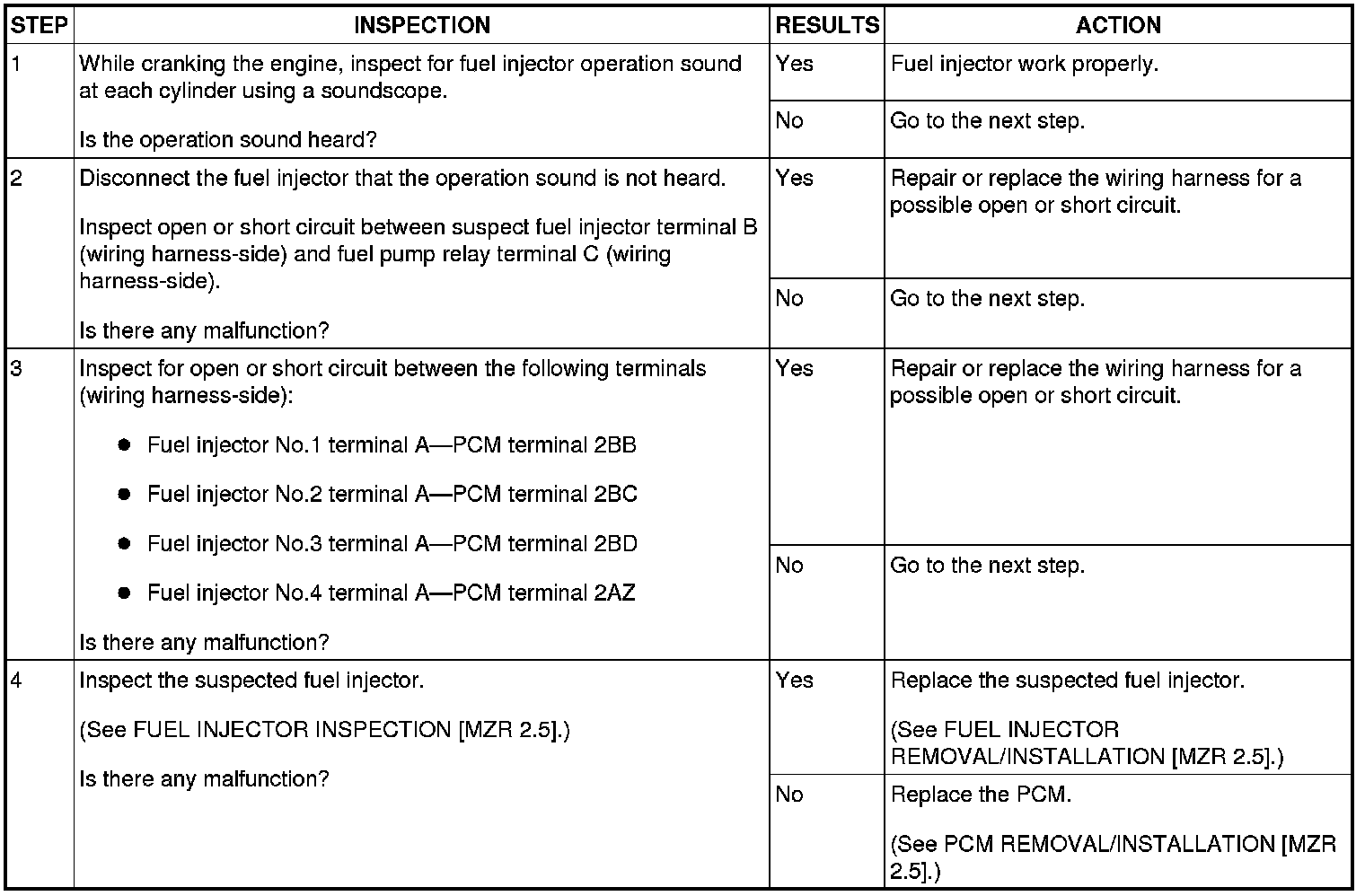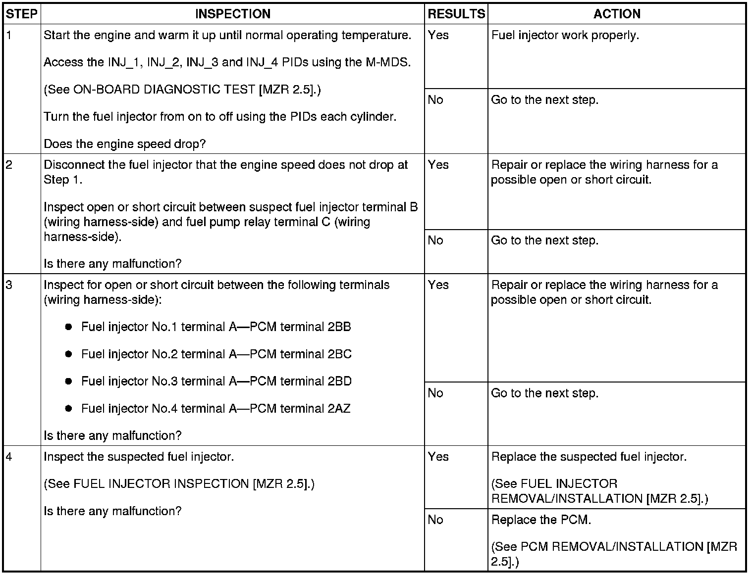 ENGINE CONTROL SYSTEM OPERATION INSPECTION [MZR 2.5]