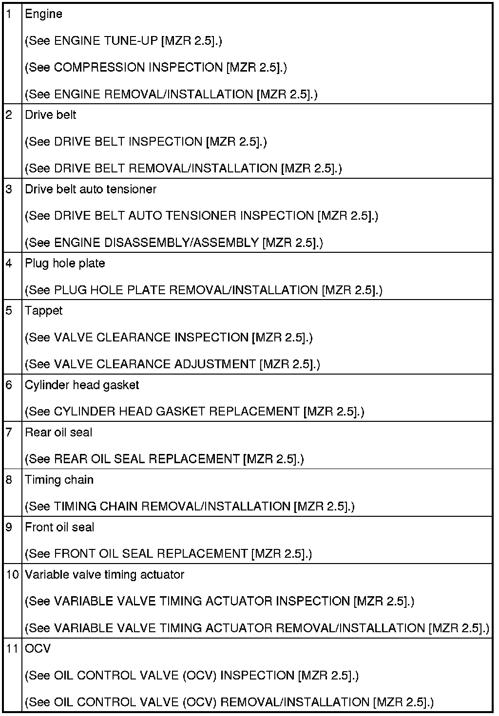 ENGINE LOCATION INDEX [MZR 2.5]