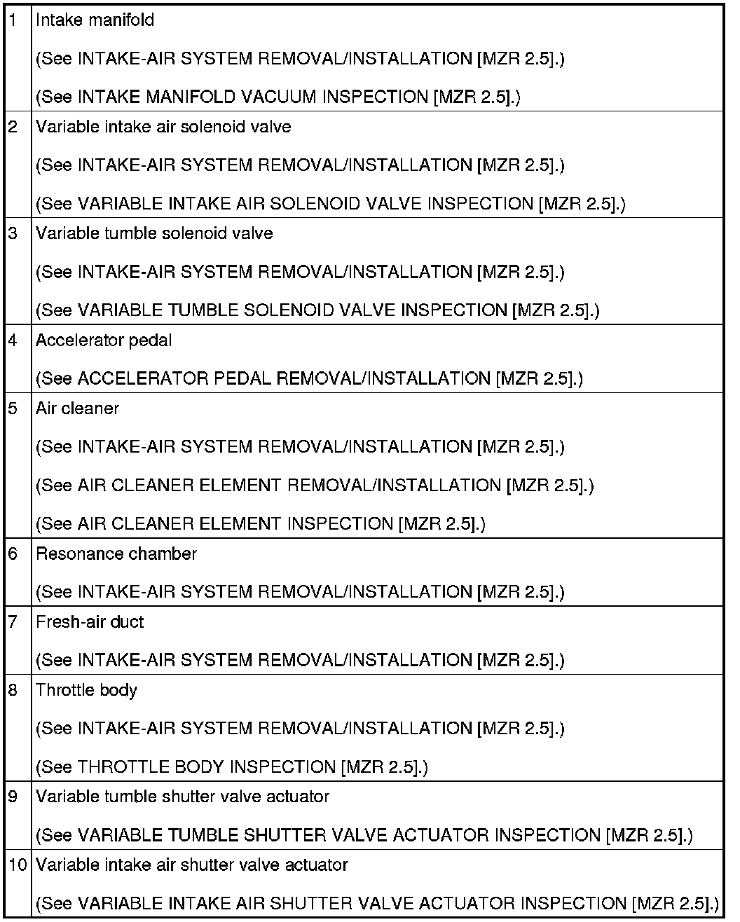 INTAKE-AIR SYSTEM LOCATION INDEX [MZR 2.5]