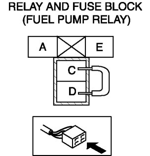 - Using a jumper wire, short fuel pump relay terminals C and D in the relay and fuse block.