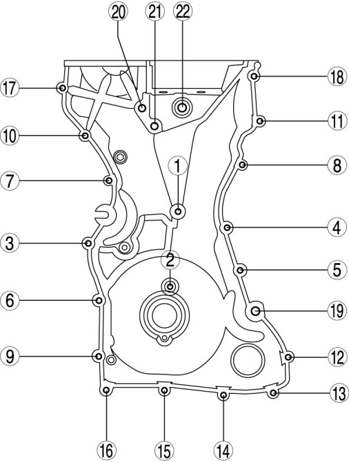 Install the engine front cover bolts in the order as shown.