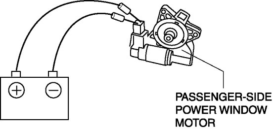 3. Apply battery positive voltage and connect the ground to the passenger-side power window motor terminals, and then inspect the passenger-side power window motor operation.