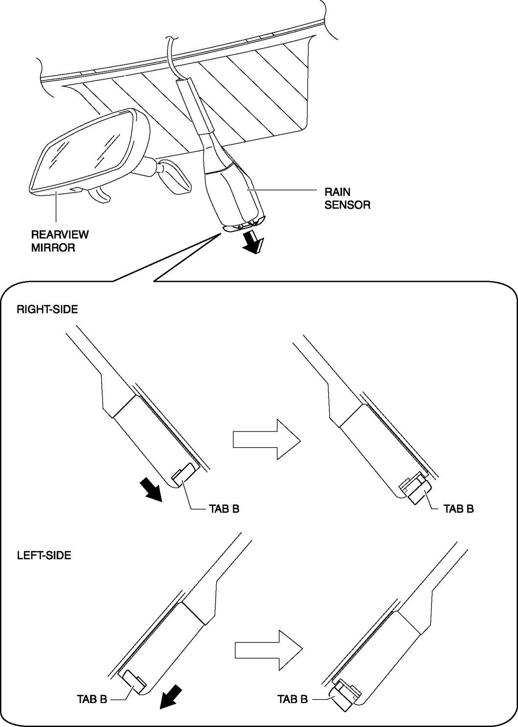 4. Remove the rain sensor in the direction of the arrow shown in the figure.