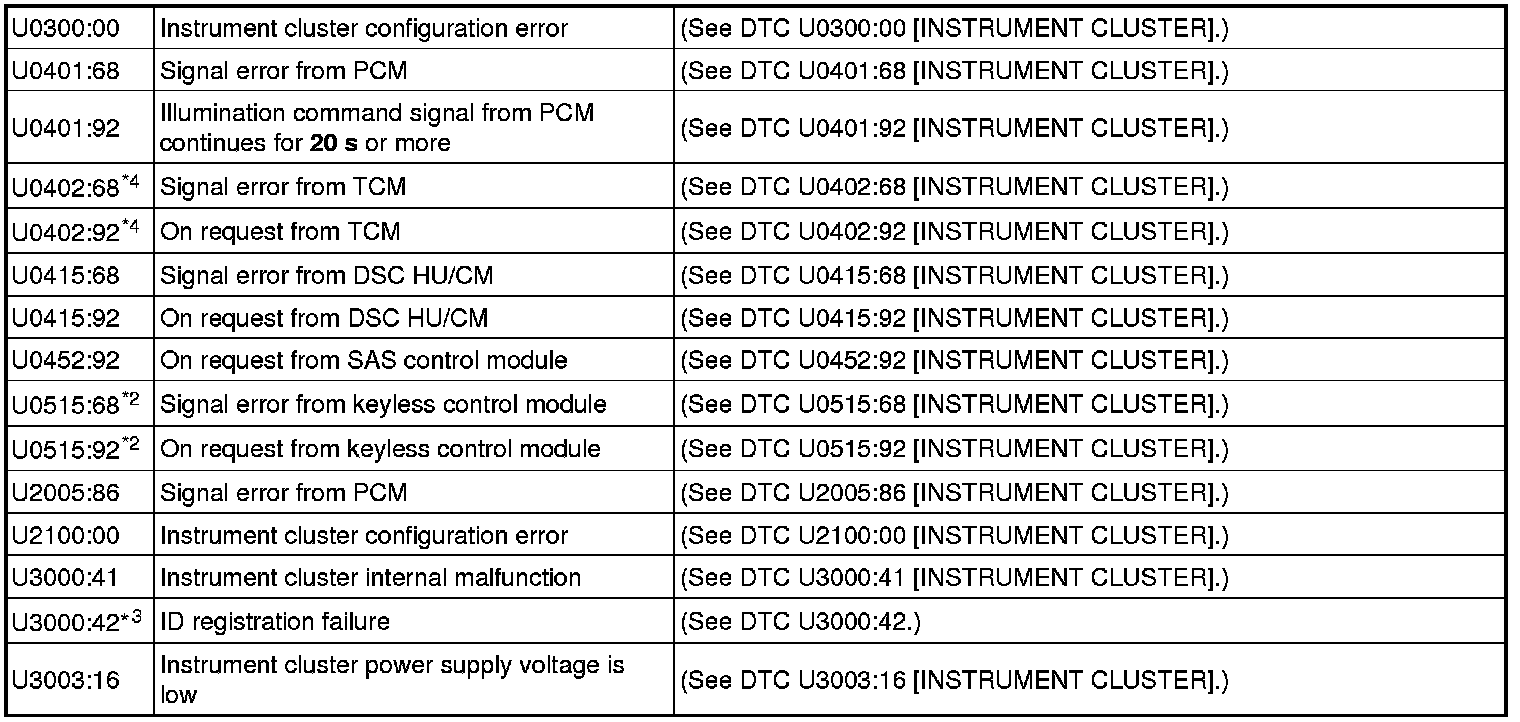 DTC TABLE [INSTRUMENT CLUSTER]