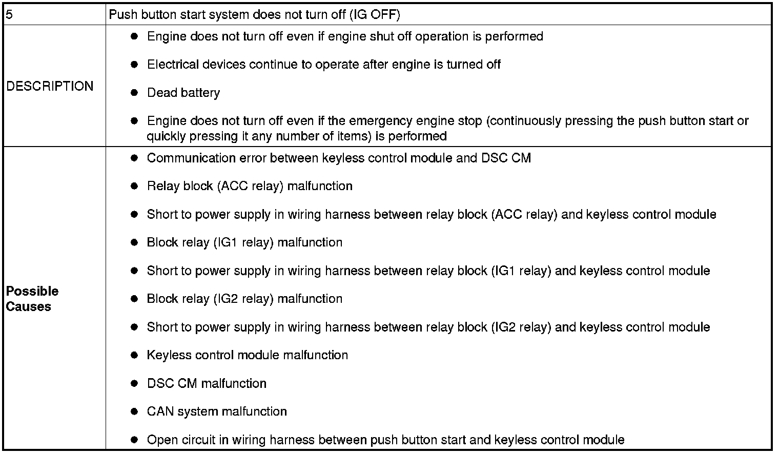 No. 5 Push Button Start System Does Not Turn OFF (IG OFF)