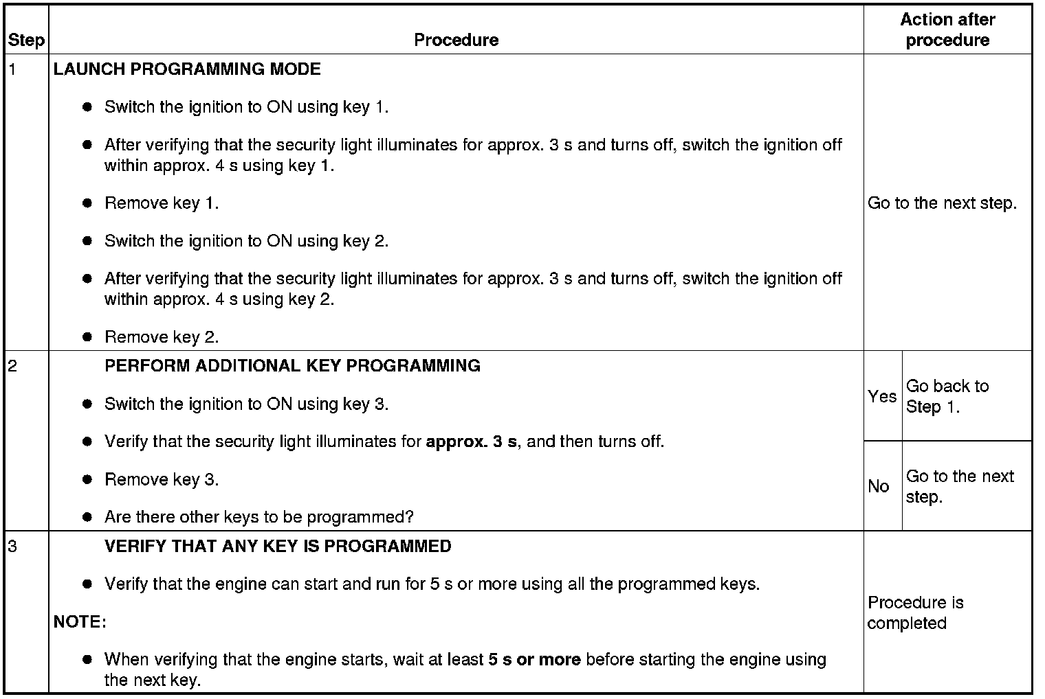 - This procedure is performed for disabling the No.1 Additional Key Programming Procedure (Using Two Valid Keys).
