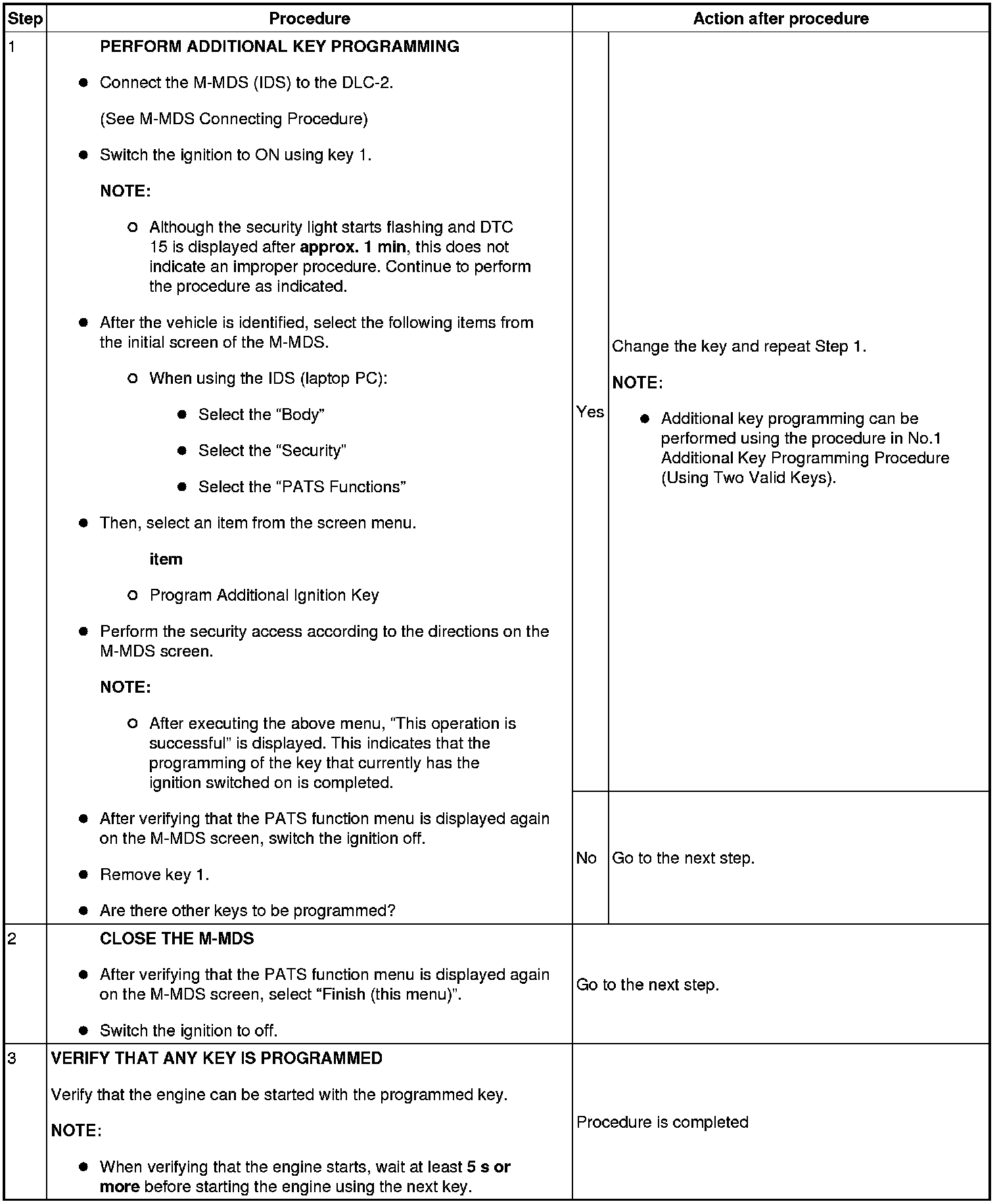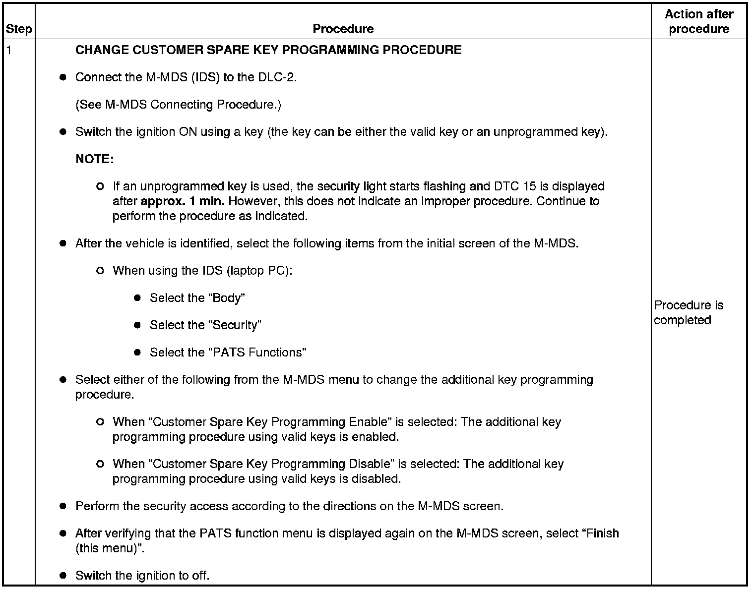 - If a key ID number cannot be programmed and DTC 15 is displayed, the maximum number of programmed keys may have been reached. Verify the number of programmed keys using the M-MDS.