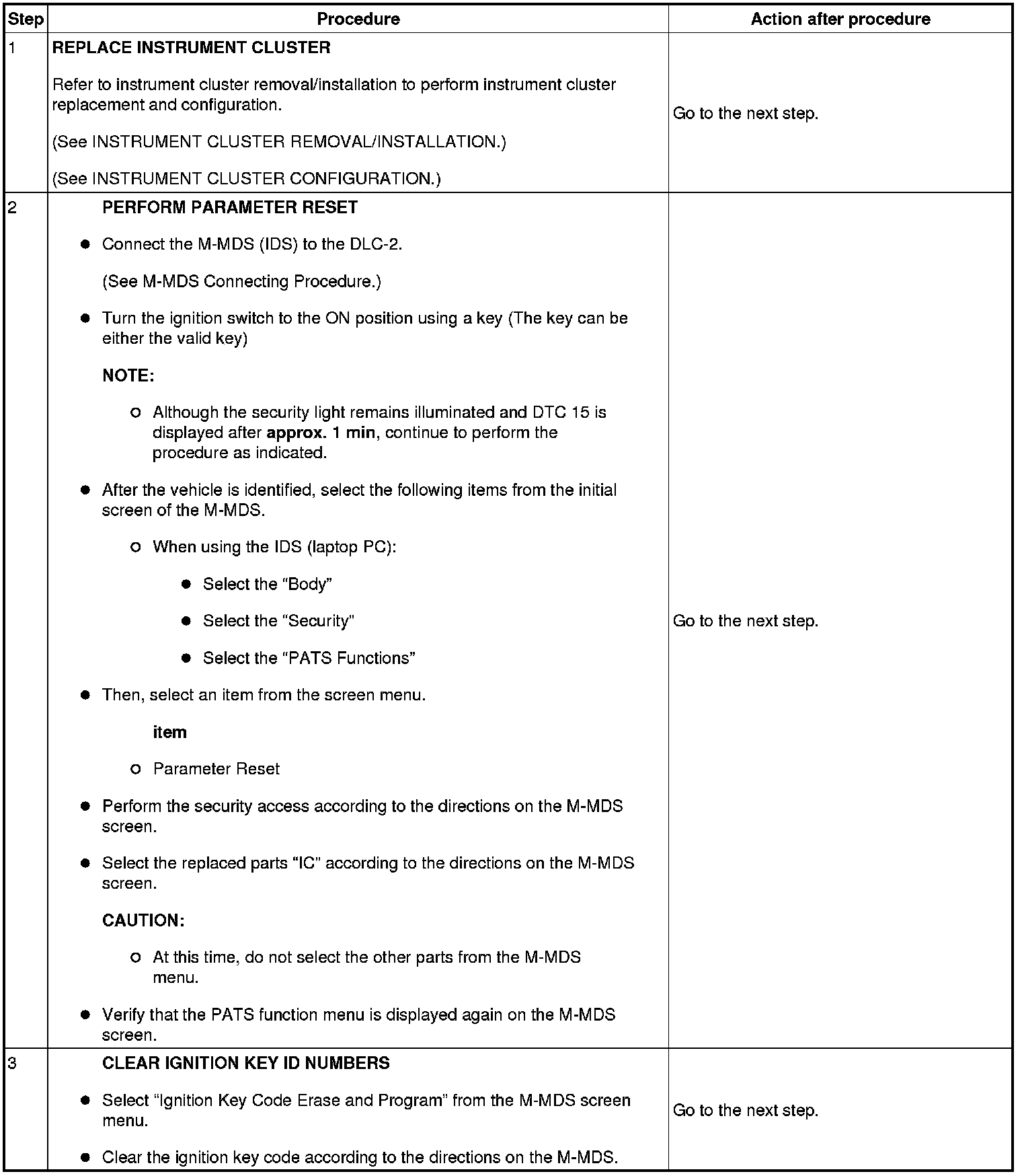 No.6 Programming Procedure Due to Simultaneous Replacement of Immobilizer System-related Parts (PCM and Instrument Cluster)