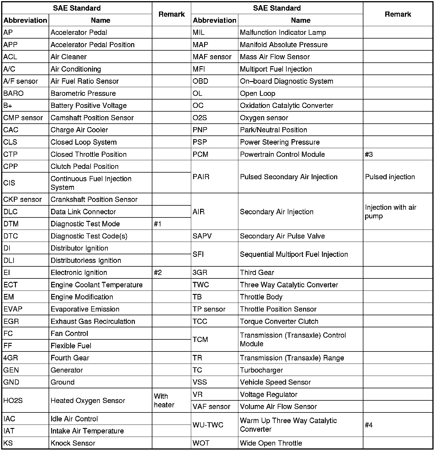 - In accordance with new regulations, SAE (Society of Automotive Engineers) standard names and abbreviations are now used in this information. The table below lists the names and abbreviations that have been used in Mazda manuals up to now and their SAE equivalents.
