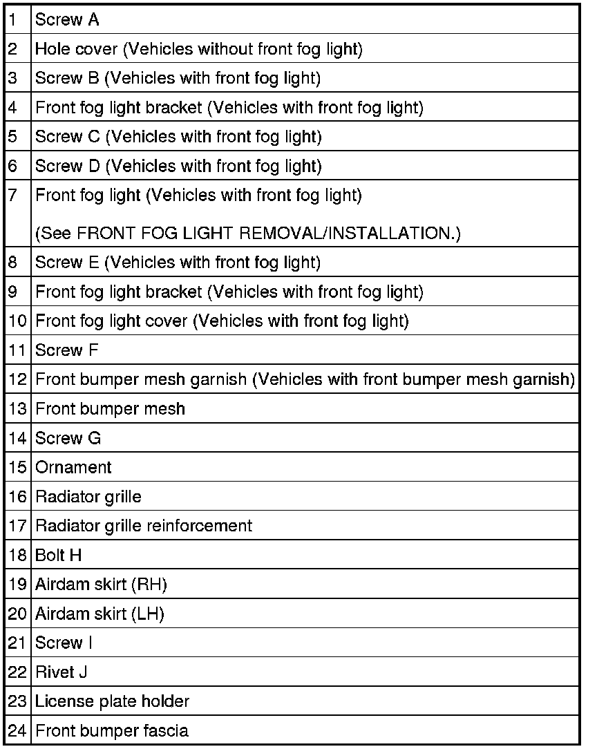 Disassemble in the order indicated in the table.