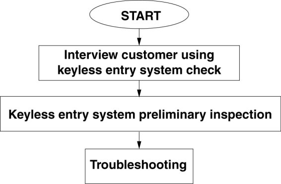 - Go to troubleshooting after identifying the specific malfunction by doing a advanced keyless entry and push-button start system preliminary inspection.