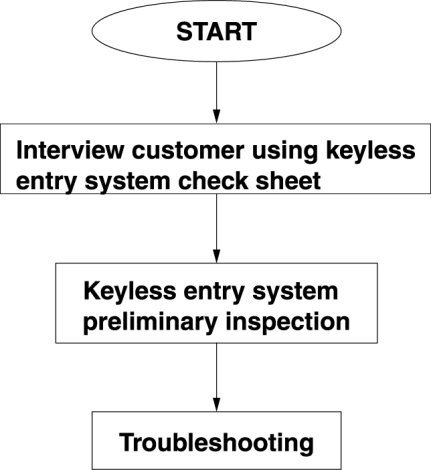- Go to troubleshooting after identifying the specific malfunction by doing a keyless entry system preliminary inspection.