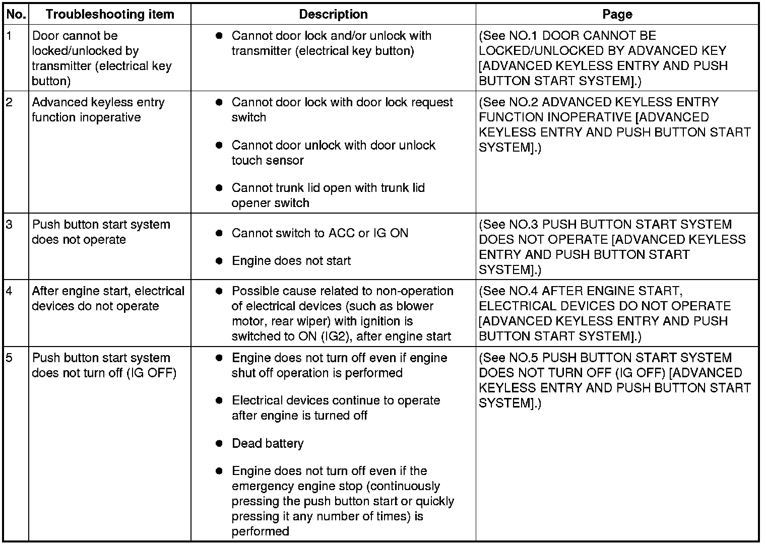 SYMPTOM TROUBLESHOOTING CHART [ADVANCED KEYLESS ENTRY AND PUSH BUTTON START SYSTEM]