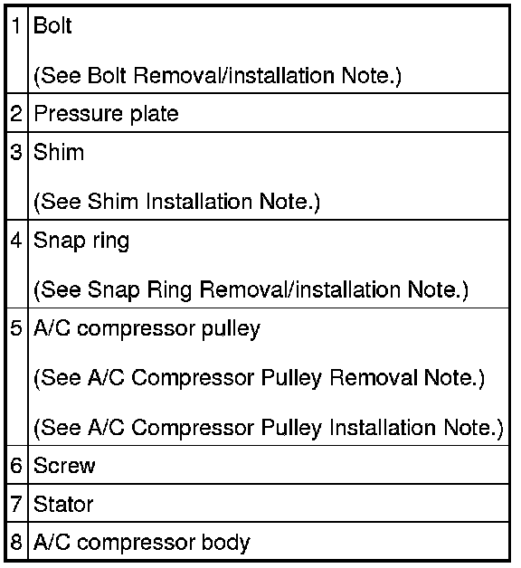 1. When removing or installing the bolt, lock the A/C compressor pulley against rotation using the following procedure.
