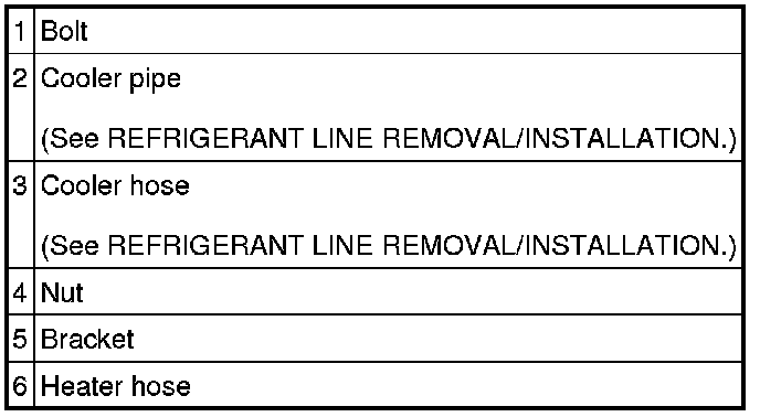 5. Disconnect from A/C unit in the order indicated in the table. Do not allow compressor oil to spill.