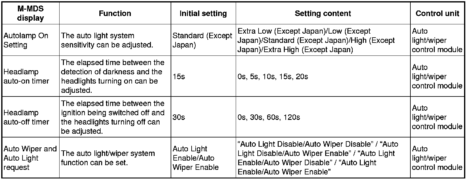 - For the room light control system / turn light system, refer to the control system personalization features setting. Control System Personalization Features Setting Procedure