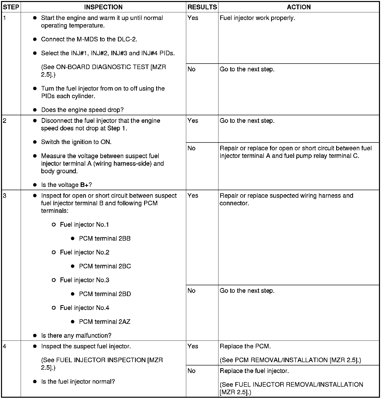 ENGINE CONTROL SYSTEM OPERATION INSPECTION [MZR 2.5]