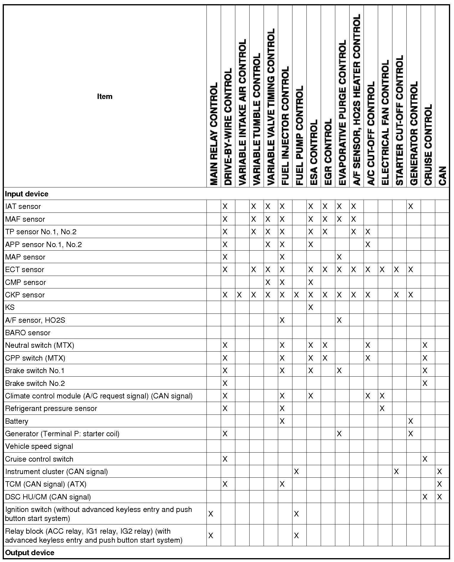 Control System Device And Control Relationship Chart