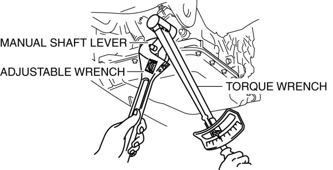 1. Set the adjustable wrench as shown to hold the manual shaft lever and tighten the manual shaft nut.