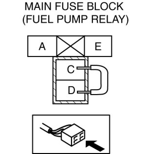 - Using a jumper wire, short fuel pump relay terminals C and D in the main fuse block.